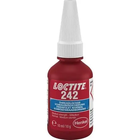 Schraubensicherung LOCTITE® 242Ausführung: Mittelfeste Schraubensicherung für Verbindungen bis M36.Anwendung: Zum Sichern von Schrauben, Muttern und Stehbolzen gegen das Losdrehen durch Vibration, z. B. an Getrieben, Motoren und Gehäusen. Gut aufzutragen durch thixotrope Komponente.Signalwort: AchtungGefahrenhinweise:H319: Verursacht schwere Augenreizung;H335: Kann die Atemwege reizen;H412: Schädlich für Wasserorganismen, mit langfristiger Wirkung