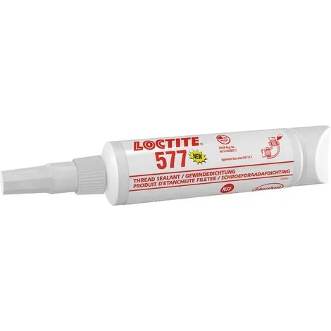 Gewindedichtung LOCTITE® 577Ausführung: Mittelfeste Rohrgewindedichtung.Anwendung: Universell einsetzbare Gewindedichtung für alle Normalmetallgewinde und Grobgewinde bis 80 mm (3″). Besonders für schnelle Verarbeitung bei niedrigen Temperaturen, z. B. für Wartungsarbeiten im Außenbereich. Erzielt Sofortdichtheit bei niedrigem Druck. Mit DVGW- und WRAS-Freigabe.Signalwort: AchtungGefahrenhinweise:H317: Kann allergische Hautreaktionen verursachenEUH204: Enthält Isocyanate. Kann allergische Reaktionen hervorrufen.