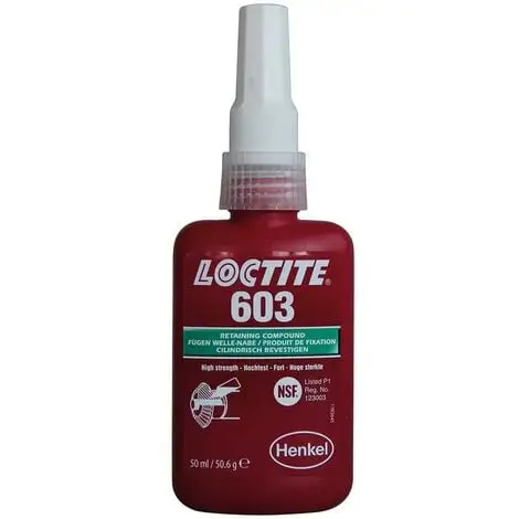 Fügeklebstoff LOCTITE® 603Ausführung: Öltolerantes Fügeprodukt, Handfestigkeit nach ca. 10 Minuten.Anwendung: Für Klebespalten bis 0,1 mm. Schnell härtend, mit hoher Festigkeit. Toleriert geringe ölartige Verschmutzungen. Wird zum Kleben von zylindrischen Fügeteilen besonders in solchen Fällen eingesetzt, wo saubere Oberflächen nicht immer gewährleistet werden können. Das Produkt härtet unter Luftabschluss zwischen eng anliegenden Metallflächen aus und verhindert selbstständiges Losdrehen und Undichtheiten durch Stöße und Vibrationen. Typische Anwendungen sind u. a. das Befestigen von Rollenlagern oder ölimprägnierten Buchsen in Lagergehäusen. Mit WRC-Freigabe.Signalwort: GefahrGefahrenhinweise:H315: Verursacht Hautreizungen;H317: Kann allergische Hautreaktionen verursachen;H318: Verursacht schwere Augenschäden;H335: Kann die Atemwege reizen;H412: Schädlich für Wasserorganismen, mit langfristiger Wirkung