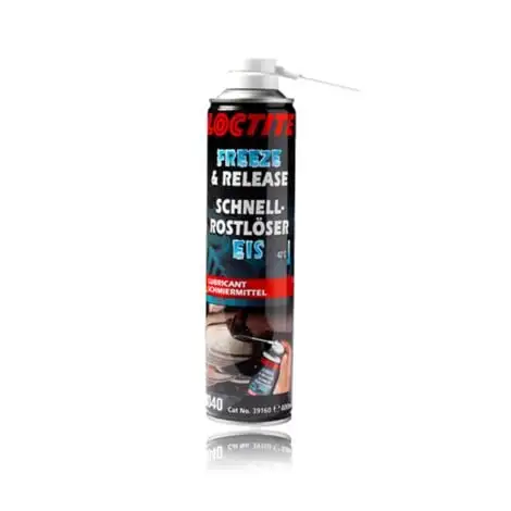 LOCTITE® 8040™ est une huile minérale formulée spécialement pour débloquer des pièces rouillées, corrodées, ou grippées. L’effet choc thermique par le froid permet de porter les pièces instantanément à -43°C et provoque des micro-fissures dans la couche de rouille ou corrosion.