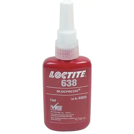 Colle pour assemblage cylindriqueColle forte pour assemblage cylindique Loctite 638 Produit de fixation des assemblages cylindriques, particulièrement adapté pour des jeux jusqu’à 0,25 mm et lorsque l’on recherche une résistance mécanique maximum à température ambiante.
